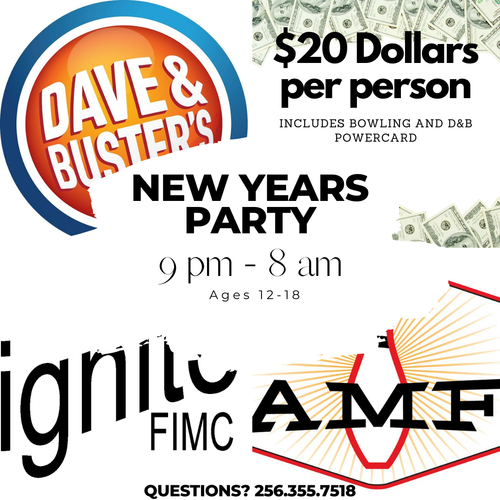 If you are interested in going to the New Years party, contact Pastor Ethan at 573.944.2046.